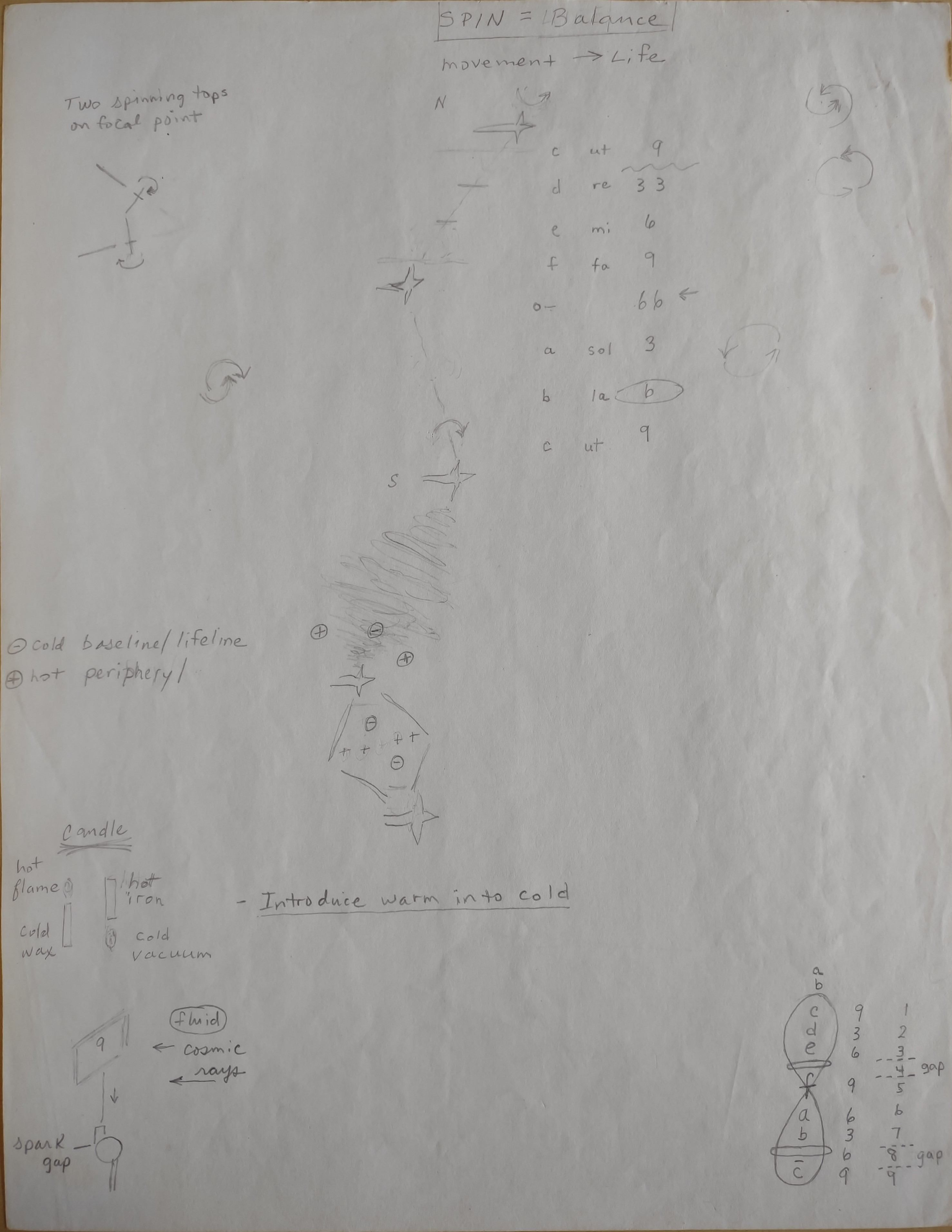 Larz: Yes, in part. The drawing conveys balanced circuitry. A natural battery of congregated positives and negatives. Picture the swirling, energetic air being expelled from a trumpet.